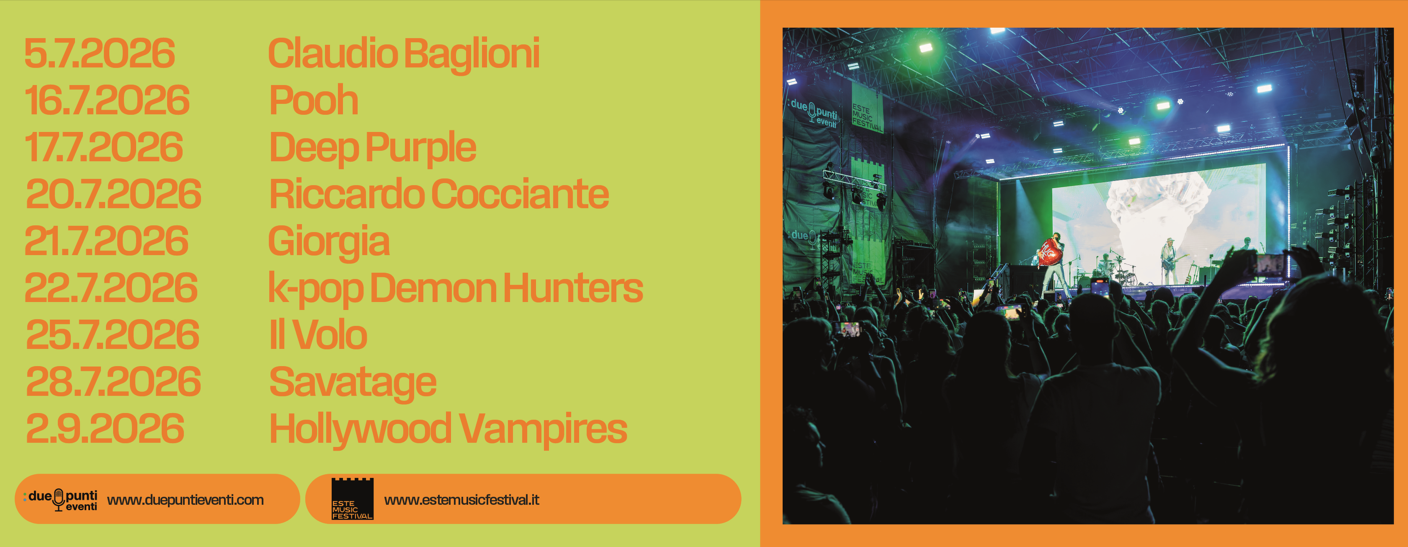 Organizzato da DuePunti Eventi in collaborazione con il Comune di Este, l’Este Music Festival trasforma ogni estate questo luogo iconico in un punto di riferimento per la musica dal vivo, regalando appuntamenti indimenticabili sotto le stelle.