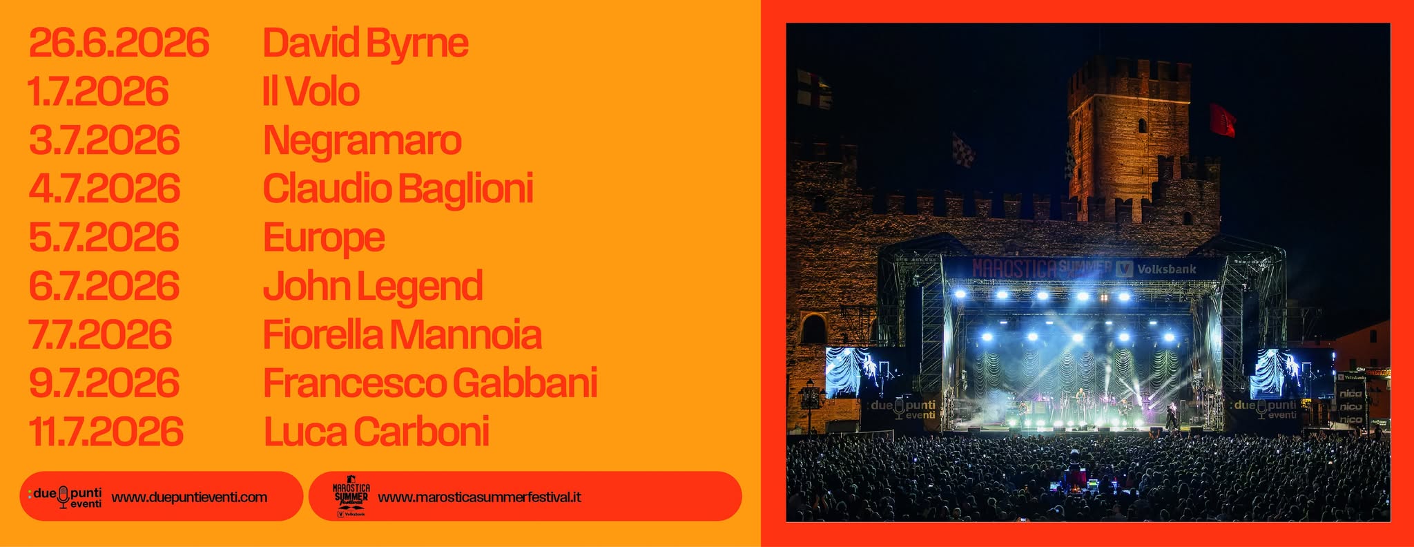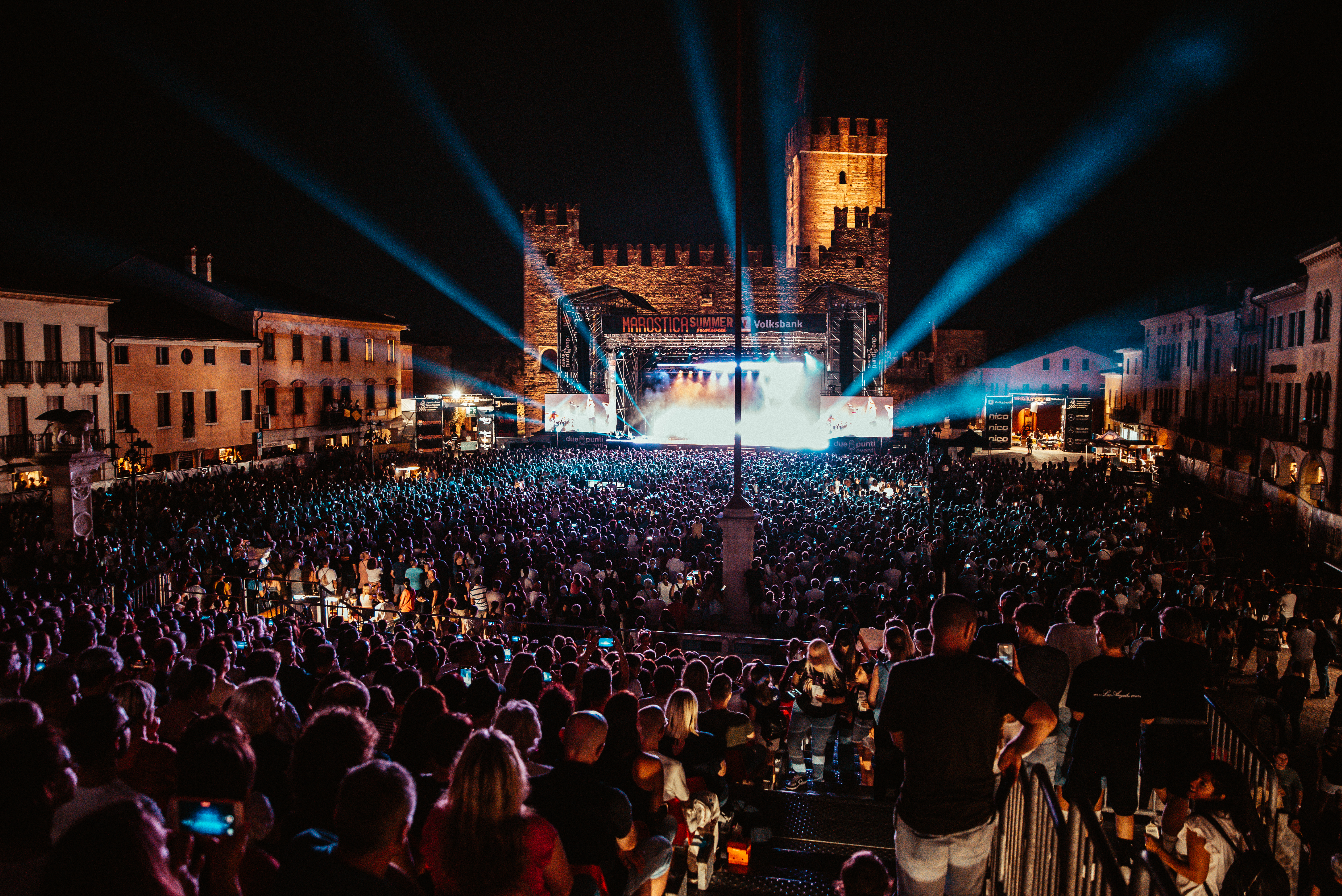 Il Marostica Summer Festival Volksbank è uno degli appuntamenti musicali più attesi dell’estate veneta e porta, ogni anno nelle prime settimane di luglio, grandi nomi della scena nazionale e internazionale nel cuore di uno dei luoghi più iconici d’Italia: la spettacolare Piazza Castello di Marostica.